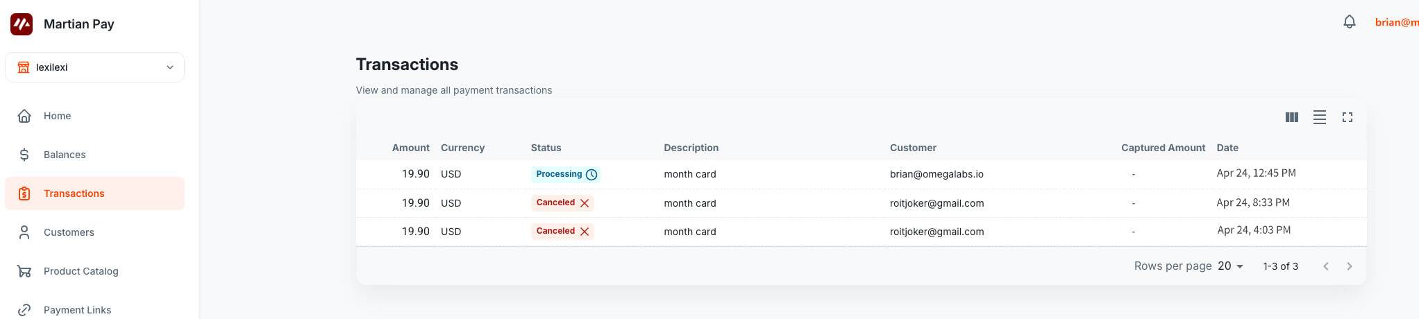 Integrate with the MartianPay API and webhooks to listen for transaction events and retrieve real-time payment details programmatically.